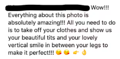 Sexually aggressive comment on Instagram post of an influencer
