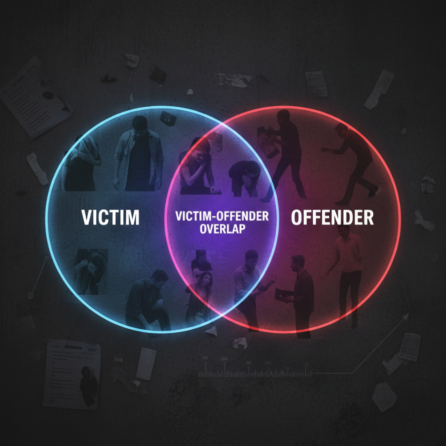Research has demonstrated a pronounced and positive link between participation in criminal behavior and the experience of victimization, also known as the overlap between victims and offenders. The Victim-Offender overlap examines the intricate connection between individuals who experience victimization and those who engage in criminal behavior. It challenges the conventional notion of victims and offenders as separate entities by exploring the potential overlap or relationship between them (Daigle, 2020). This approach reveals instances where victims may later become offenders due to factors like trauma or personal circumstances. Equally, offenders can also become victims, creating a victim-to-offender relationship.